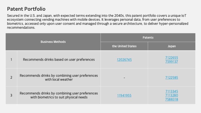 This portfolio provides the foundational technology—granted in the U.S. and Japan—to evolve ordinary vending machines into smart touchpoints that connect with passing app users.