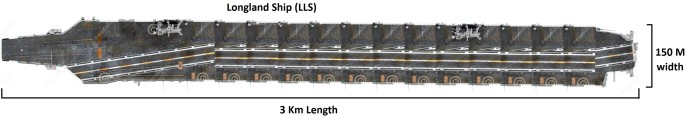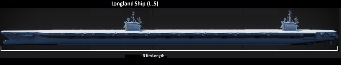 This aircraft carrier is 3 km long and 150 Meters width. It can carry large aircraft, for example, a