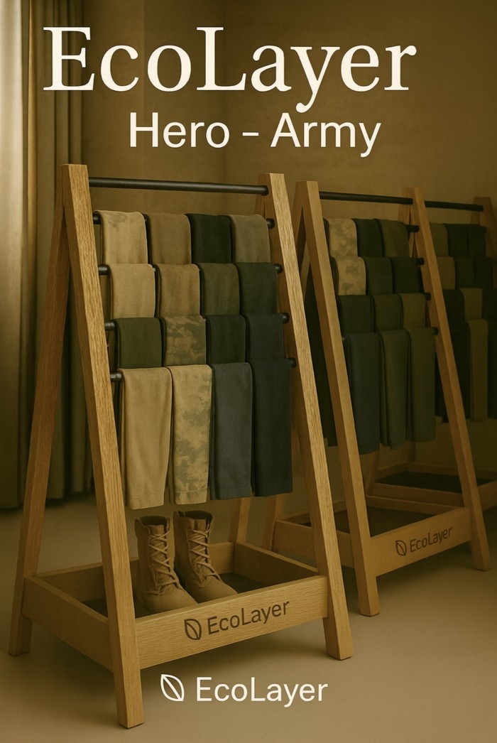 Each EcoLayer unit is built from ecological materials that reduce plastic use and promote circular design. The system saves time, protects garments, and eliminates the clutter and waste of 8 billion hangers discarded worldwide every year.