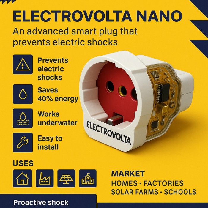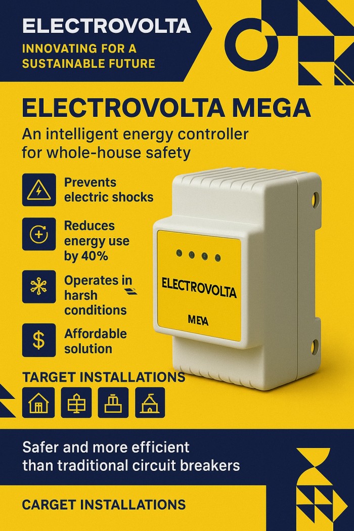 rElectrovolta is a groundbreaking invention designed to make electricity safe for human interaction by preventing electric shock, electric devices damage due to liquids spill and optimizing energy use. Our smart device integrates advanced sensors and frequency regulation technology (3000 Hz) to detect human contact with live wires and instantly cut off current flow before any harm occurs.r additionally, the device reduces electricity consumption by 25% to 40% by optimizing energy delivery at 3000 Hz instead of the standard 60 Hz.r.