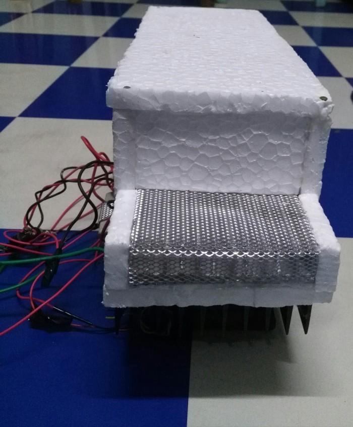 Temperature is increasing day by day across the globe. To beat the heat people use either air conditioner or air cooler. Air coolers are not a good solution for a highly humid place like Bengal. Though dry cooler is there that device is not very efficient in cooling. The alternative to this is air conditioners. The domestic Air conditioners come in two variants Window: Window Air conditioner is tough to install and cooling efficiency is low as compared to their split counterparts. Split: split air conditioners have difficulty in installation (at least any household person cannot install by themselves) and they consume huge energy. There are many manufacturers of Air Conditioners who stopped using CFC gas which have adverse effects on our environment but still they use other gases. Air conditioners use huge electricity (ex. a one-ton ac consumes more than 1000 watt). The electricity generation process itself emits various gases which act as a greenhouse gas and increases the temperature of our planet further. This means Air conditioners not only increase the electricity bill of consumers, but it also damages our environment. We tried to find out a way of efficient cooling with very economic power consumption which will be free from the hassle of installation. We made the device so economic in power consumption that it can run in alternative energy sources like solar power and it should be CFC free.