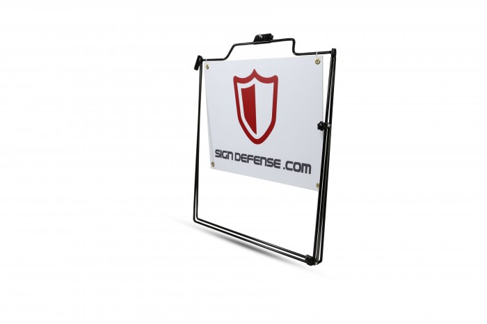 A device having means for inhibiting a holding means from collapsing, wherein said inhibiting means is configured to fit between two legs of said sign holding means; means for supporting said inhibiting means, wherein each of said supporting means is disposed at each proximate end portion of said inhibiting means; means for securing said inhibiting means to said leg of said sign holding means; means for compressing said securing means; means for locking; and means for accepting said locking means to lock said inhibiting means in place.