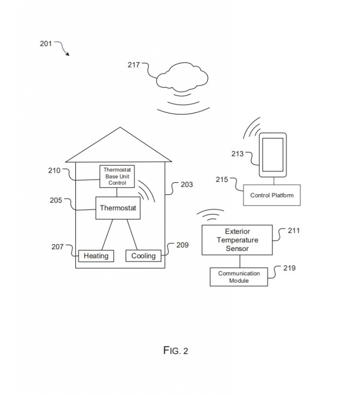 a mobile computing device configured to communicate with the thermostat and the exterior temperature sensor, the mobile computing device having an interface to receive user commands to be transmitted to the thermostat.