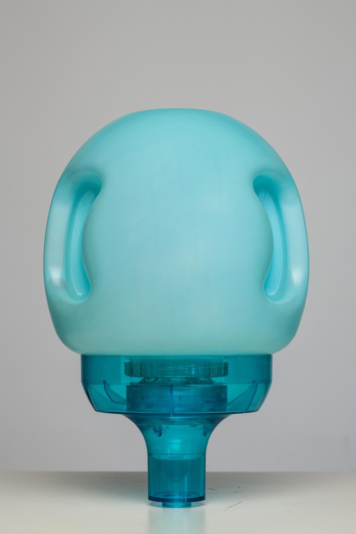 Balloon - vessel: the net volume of the balloon is nine (9) litres. The gross volume of the balloon is 9.75 litres. It is constructively solved with a unique design with side handles for easier manipulation, i.e. download or upload to funnel - inlet. The side designed handles on the balloon reduce slipping or falling off the balloon from the user's hands. The design makes it easier to use for some people and the elderly. The inner diameter of the opening on the balloon is 90 mm. The outer diameter of the balloon opening is 100 mm.