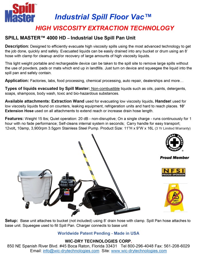 Evacuates Spills, Cleans Floors, Reduces Cross Contamination