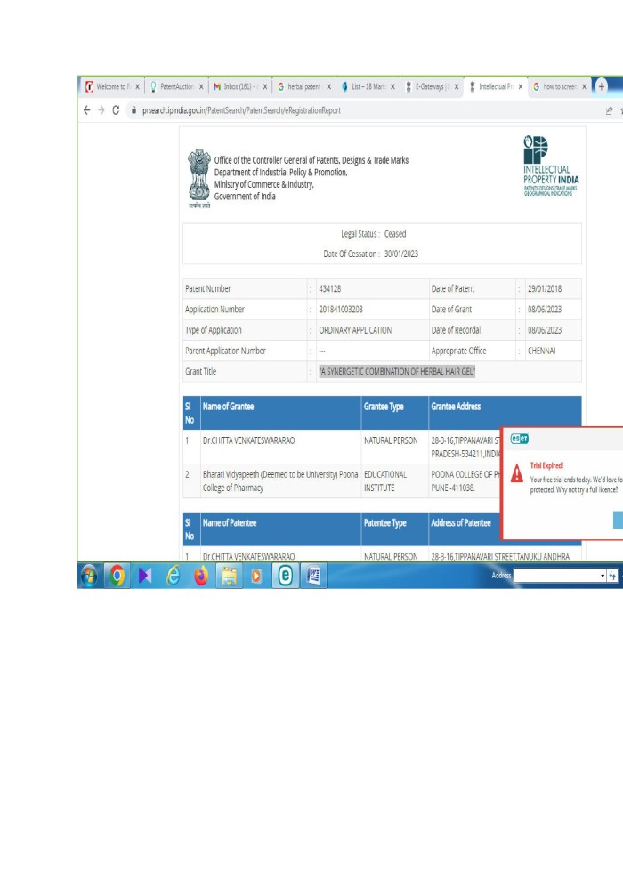 Financial informationThis Patent 434128 is having the Unmet needs of the Population like Hair growth, Dandruff treatment and Premature Greying.