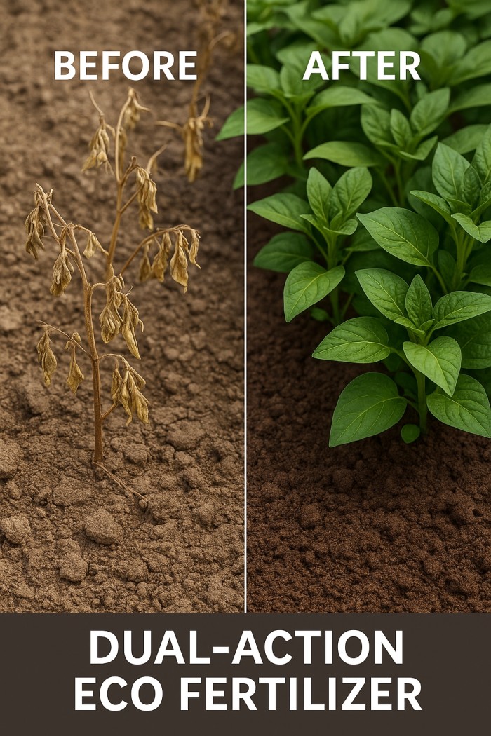 Dual-action eco fertilizer cuts irrigation by 50% while improving yield and restoring soil health. Ideal for farms and gardens in dry climates.