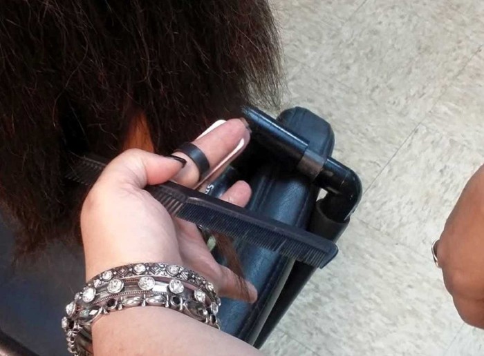 This guide fits on the finger used for cutting hair. It provides a visual straight line ideal for beginning stylists and students. The easy to follow line allows the user a fast guide to an accurate haircut. It is sanitizable and adjustable. Students can use it to refine and speed up their haircuts. It solves the problem of visualizing straight lines in blunt and layered haircuts. It gives the student/stylist a visual to follow which speeds up their learning and makes the haircut extremely accurate, especially if you have a crooked finger or you struggle with visualizing haircutting instructions. This tool can be used for make up and eye lash applications for it serves as table for product. It can also be used to point cut and it will protect the fingers from the scissors. It can also serve as a safety tool while cutting clients bangs-especially childrens bangs. Clients love it because they feel more secure knowing the student/stylist is using a tool for accuracy. It is also fun and makes learning so much faster. This tool is ideal for training students on a precision cut required by most state boards.