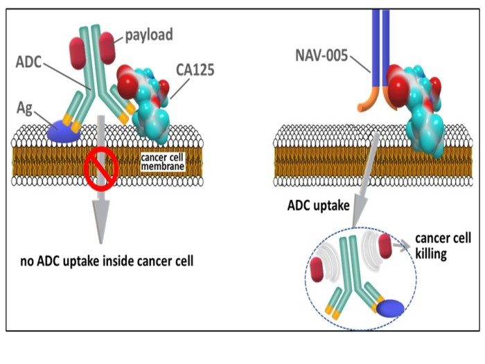 This internationally filed patent covers the composition-of-matter and use of a high-affinity CA125 antagonist, named NAV-005, for the treatment of patients with CA125-positive disease. NAV-005 is a unique IgG1 fusion protein that binds to CA125 with high affinity and antagonizes its humoral immunosuppressive effects on antibodies targeting disease-associated cells as well as ADCs to which CA125 binds and reduces internalization of target cells, a requirement for maximal ADC cytotoxicity.