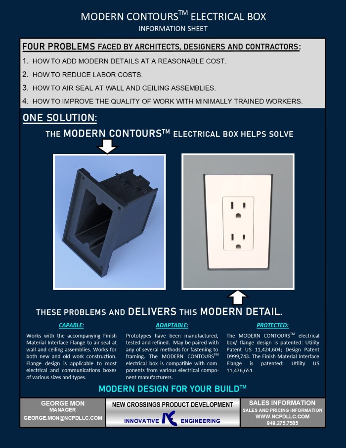 Listed on website as "Modern Contours Electrical Box". The name Modern Contours is a registered trademark owned by the seller of this patent.