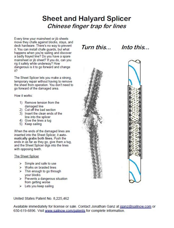 Financial informationFrayed lines happen. But with the Sheet and Halyard Splicer, a minor mishap won't ruin your day. Make quick, secure repairs to your mainsheet or jib sheets underway without ever needing to remove them. Don't get caught unprepared – have the Splicer on board for a stress-free sail.