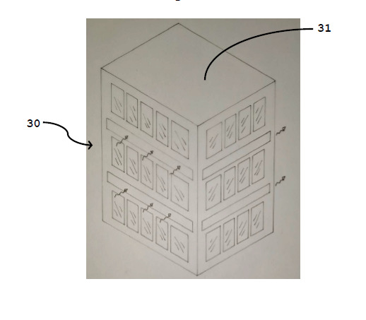 The invention introduces an integrated construction concept in which the building itself becomes an active part of the wind-energy harvesting system. Unlike traditional wind solutions installed externally and outside the building envelope, the system enables more efficient, controlled, and continuous management of airflow, making it particularly suitable for complex urban contexts.