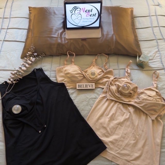 Next Best is a Nursing Bra and a nursing tank that is designed for mom’s who cannot naturally breastfed and will allow them to simulate natural breastfeeding. Next Best allows mom’s, foster moms, adoptive moms and even dad’s to experience the same closeness to their babies that natural breastfeeding does. The nursing bra and nursing tank consist of three layers. The first outer layer can be opened and flipped down by releasing the clasp at the bra strap. The second layer has an opening for a nipple and can be opened by unfastening the snaps that attach the second layer to the back third layer. The second and third layer create a pocket for the soft pliable milk storage bladder. The third layer covers the breast so mom is never exposed. The milk storage bladder has a threaded neck for fastening a commercially available nipple with retainer ring. It is then placed into the pocket with the nipple protruding through the second layer opening. It is now ready to simulate natural breastfeeding. The breastfeeding position is a position that can only be achieved by natural breastfeeding or by Next Best Nursing Bra and Nurser Tank. The other device on the market is called Medela Supplemental Nursing System or (SNS). This is an apparatus for special needs. Those needs can be low milk supply or latch issues. It is not designed to be used as a breastfeeding option. Common issues and complaints with the SNS is leaking, clogging, difficulty with cleaning and sanitizing. The tiny tube that is taped to the breast often needs to be re-taped and re-positioned while feeding. This tiny tube is connected to a milk storage container that hangs around mom’s neck or is attached to a IV stand.