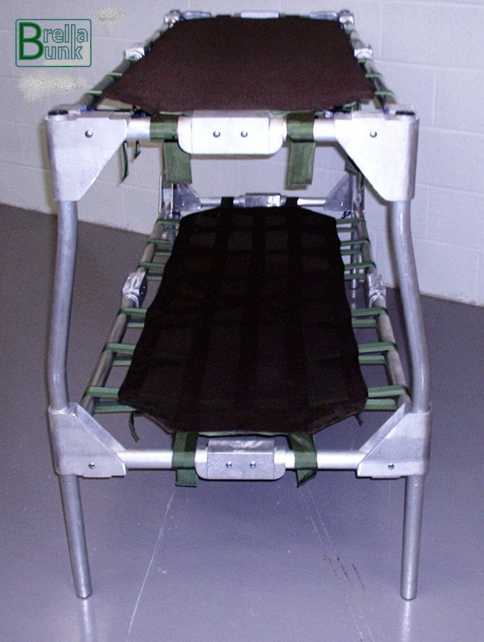 All Patent application rights. Design plans, manufacturing drawings and specifications for the double cot bunk and single stackable; 3 prototypes double bunks and a single stackable cot with newly designed corners.