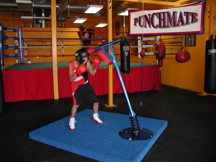 A training/conditioning device that simulates a sparring partner. You hit it, it hits you back! Work on jabs, uppercuts, head movement, footwork, defensive and offensive skills all at the same time as if you are in a real fight. As you will see, nothing in the fitness to fighting industry comes even close.