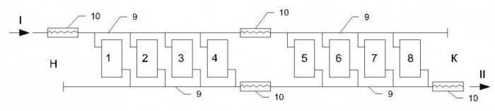 The fuel system of diesel, which includes multi-chamber reactors, which are mounted in the filling nozzles - cutoff of fuel supply pumps. Chokes convert wave processes in order to stabilize and reduce the non-uniformity of the fuel portion in the cylinders of diesel.