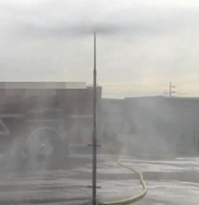 The extendable fire extinguisher can go from a normal height of 3 feet to 10 feet as soon as it is connected to the fireman's hose and disperses water in a circular motion. It can go through walls, ceilings and the skin of an airplane. It can be used on ships, buildings, and homes.