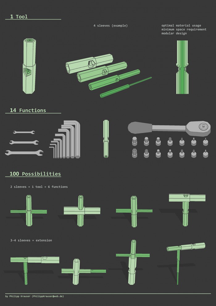 The invention relates to a polygonal-socket wrench combination tool which has a plurality of polygonal-socket wrenches for different bolt sizes. In order to create a polygonal-socket wrench combination tool for different bolt sizes, which has a compact and simple structure, it is proposed in the context of the invention that the sockets each have two sections which have different polygonal-socket cross sections.